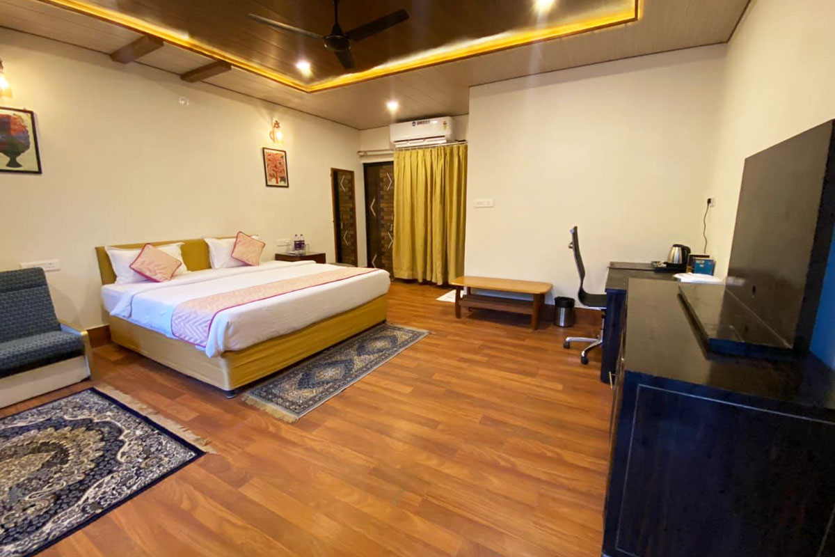 Offering our guests premium facilities and comfortable stays is what we pursue. Therefore, we have designed an elevated-style room that offers a perfect blend of luxury and nature. Our premium Machan room has been crafted to perfection including a range of premium amenities that are essential to a true relaxing stay. The room features a king-size bed, sitting area, working desks, AC and TV. You also get an attached bathroom with a private tub and all the necessary toiletries for your utmost comfort. From elegantly designed interiors to world-class hospitality, these rooms will ensure to offer you with staying experience of the highest order.